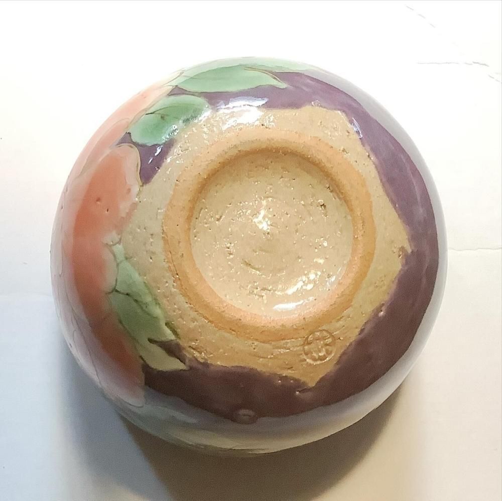 時代は昭和です。 碁笥底とは碁石を入れる器の形に似ている事から、この名称があります。 高台がなく胴からそのまま畳付きになります。 背景に紫、花はオレンジと金彩のコントラストが特徴的なデザインです。 手描きの筆使いが見え、絵画的な美しさがあるデザインてす。 華やかな色合いでおもてなしにおすすめです。 専用のお箱のご用意はございません。ご了承下さいませ。 サイズ 縦×横×高さ…約10.7×10.7×8cm minne で購入